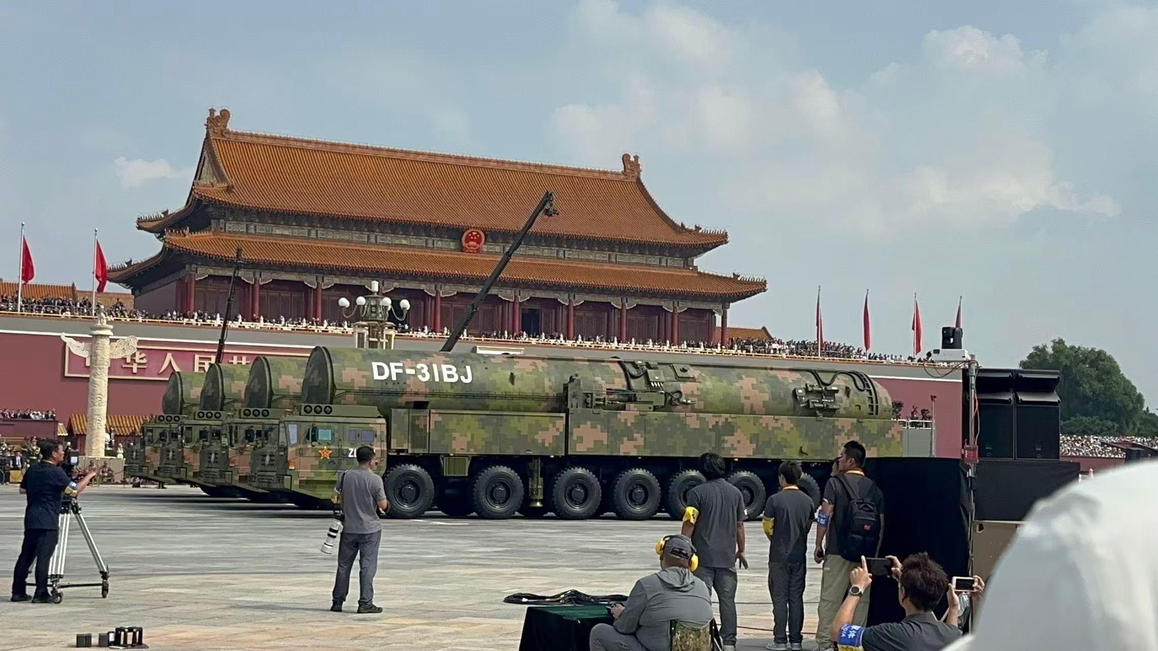 The breadth of platforms demonstrated Beijing’s intent to field a full nuclear triad — combining land-based intercontinental ballistic missiles (ICBMs), air-launched weapons from H-6 bombers, and a new JL-3 submarine-launched ballistic missile.